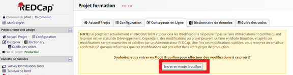 Soumettre la demande à l'administrateur REDCap en cliquant sur « Envoyer modifications pour validation »